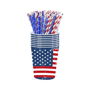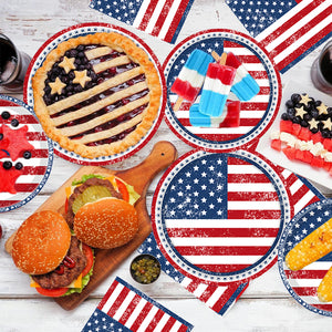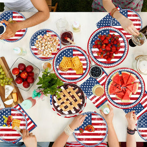 133PCS Independence Day party supplies tableware, American retro party set includes disposable plates, napkins, cups, cutlery, and tablecloths, suitable for Independence Day patriotic activities