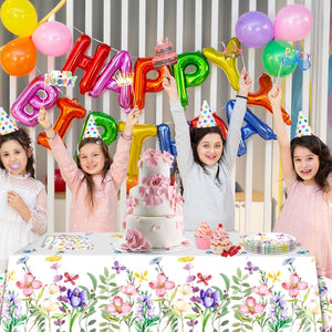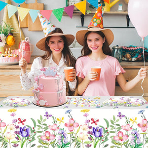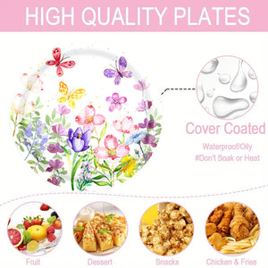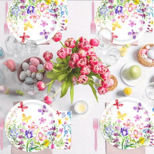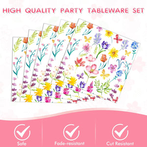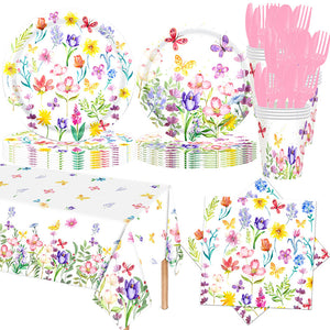 133PCS Spring tulip flower paper plate flower party decoration plate, disposable tableware decorated with spring wildflowers, suitable for birthdays, weddings, tea parties, and bridal showers