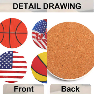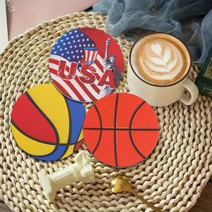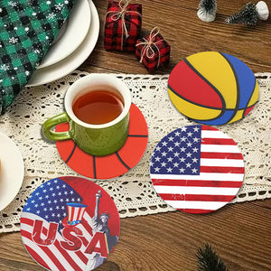 1PCS Stylish Coasters - Basketball & USA Flag Designs, Heat - Insulating & Table - Protective