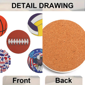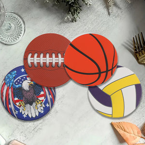 1PCS Unique Coasters - Blend of Sports (Basketball, Volleyball, Football) & USA - Inspired Designs, Heat - Resistant & Decor