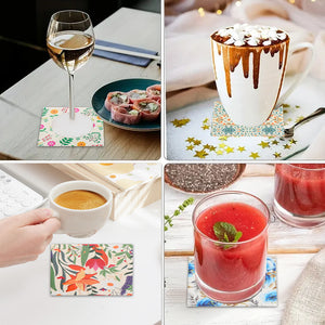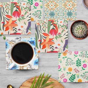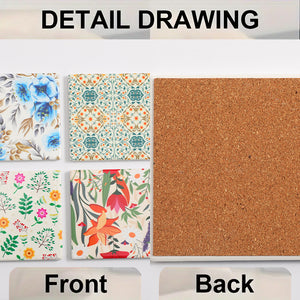 1PCS Wildflower coaster with ceramic stone and cork base, desktop protective pad and cup for home decoration